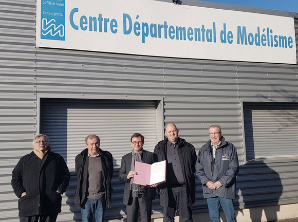 La Fédération Française de Voiture Radio Commandée et la Fédération Française d’Aéro Modélisme ont signé lundi 20 janvier en présence de Daniel Guérin, vice président du Conseil Départemental du Val de Marne en charge des Sports, une convention de mise à disposition du complexe modéliste des Marmousets situé à la Queue-en-Brie (94).